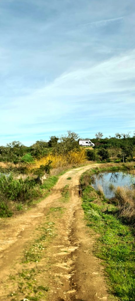 Tout frais (et fiers de l’être), on reprend la route jusqu’à Albergaria dos Fusos et son lac. On déniche un spot royal, au calme, parfait pour la nuit. Marcel approuve, Ginette se tait (pour une fois), on savoure.