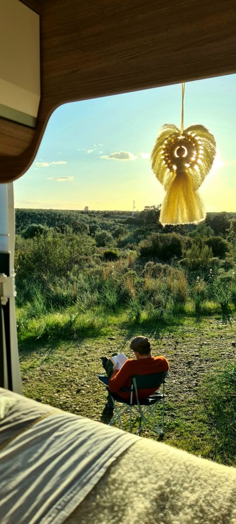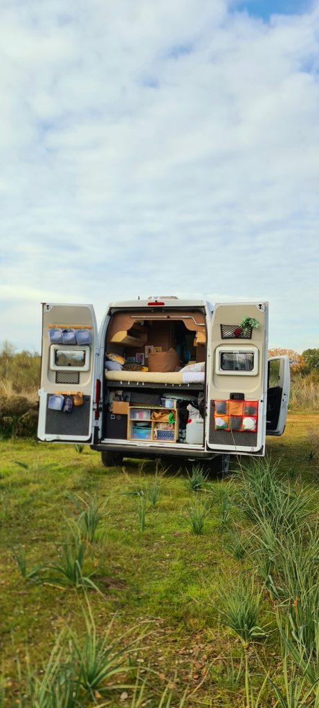 Côté pratique, c’est le camping sauvage parfait: une fontaine d’eau fraîche, un détail essentiel quand on veut éviter de se transformer en vieille olive desséchée, et des barbecues pour varier un peu de la sempiternelle boîte de thon. Et puis, il y a les collines couvertes d’oliviers, les iris sauvages qui nous font un festival de couleurs, et une ribambelle d’oiseaux qui semblent avoir décidé de nous offrir un concert privé. Bref, c’est beau, c’est paisible, et c’est le genre d’endroit où tu arrives pour une nuit et où tu restes six jours (c’est d’ailleurs ce qu’on a fait!), juste parce que tu n’arrives pas à t’arracher à cette douce sensation de liberté et d’être seul au monde.