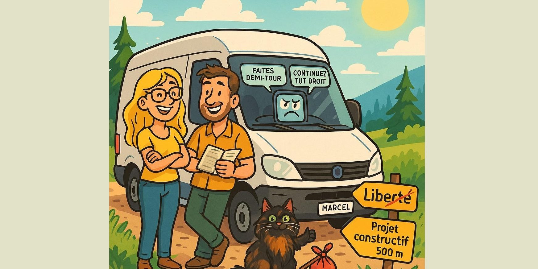 Ginette, elle, c’est la voix suave… exaspérante. Qui change d’avis comme de satellite. Qui raffole des raccourcis tordus et adore nous servir son « Faites demi-tour dès que possible » d’un ton qu’on n’ose même pas contredire. Ensemble, on forme une équipe étrange, un peu brinquebalante, mais qui avance. Le plus souvent dans la joie, parfois dans la tension, mais toujours avec cette envie de continuer.