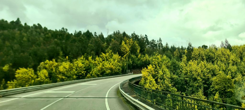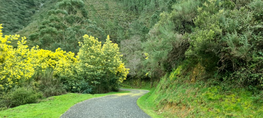 On quitte Vieira de Leiria sous un temps idéal pour les escargots et on roule en traversant un paysage dunaire où bruyères et genêts sauvages colorent l’horizon à perte de vue de leurs teintes flamboyantes mauves et jaunes.