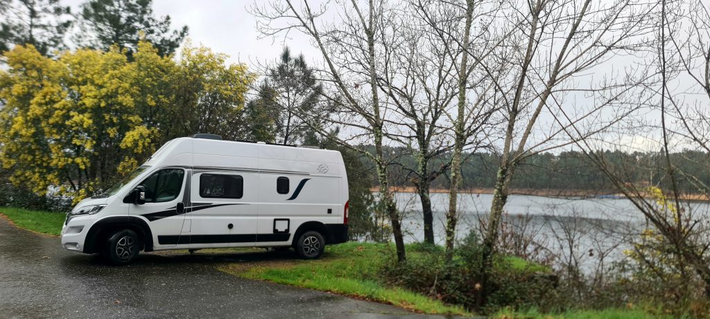 Le soir venu, on pose notre maison roulante à Albufeira da Barragem de Santa Luzia, un lac repéré sur Park4Night. On s’installe, on écoute la douce mélodie de la pluie qui tombe, et on remercie notre chauffage pour son inestimable contribution à notre bien-être.