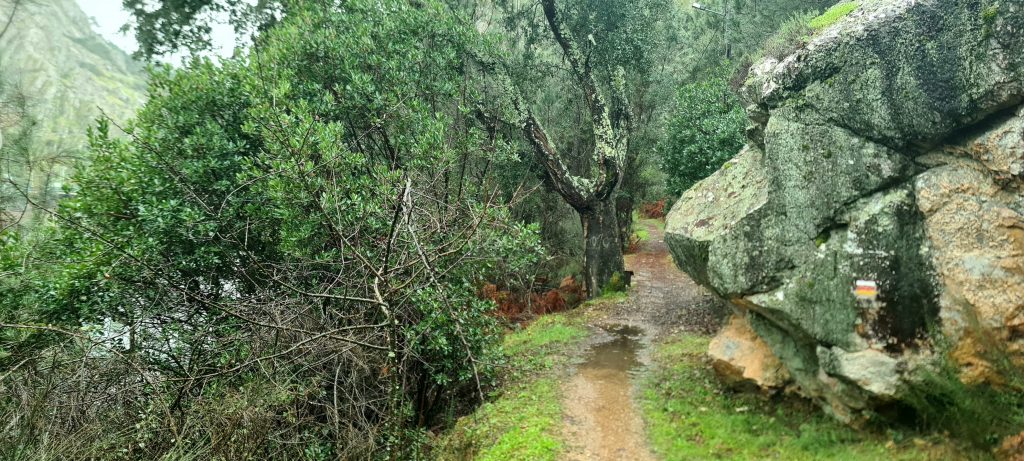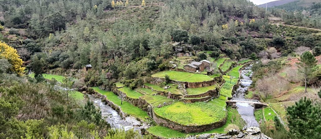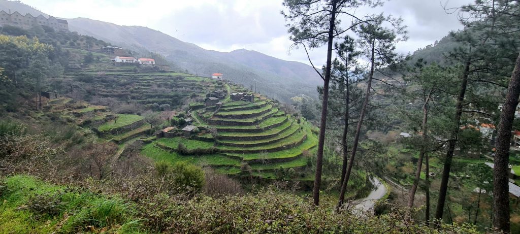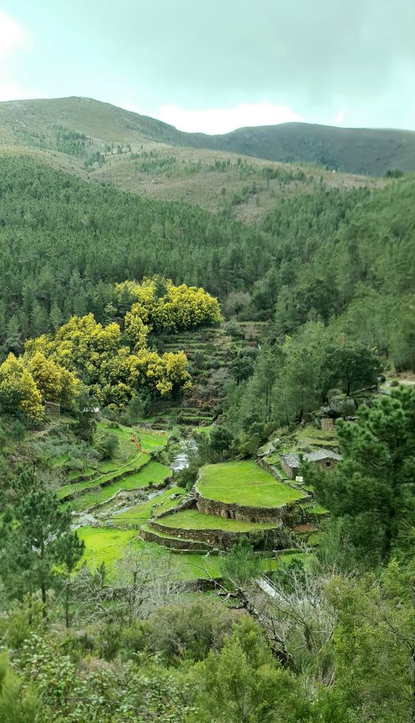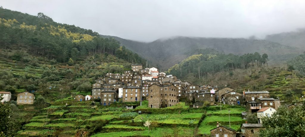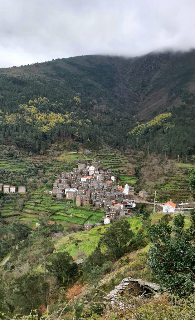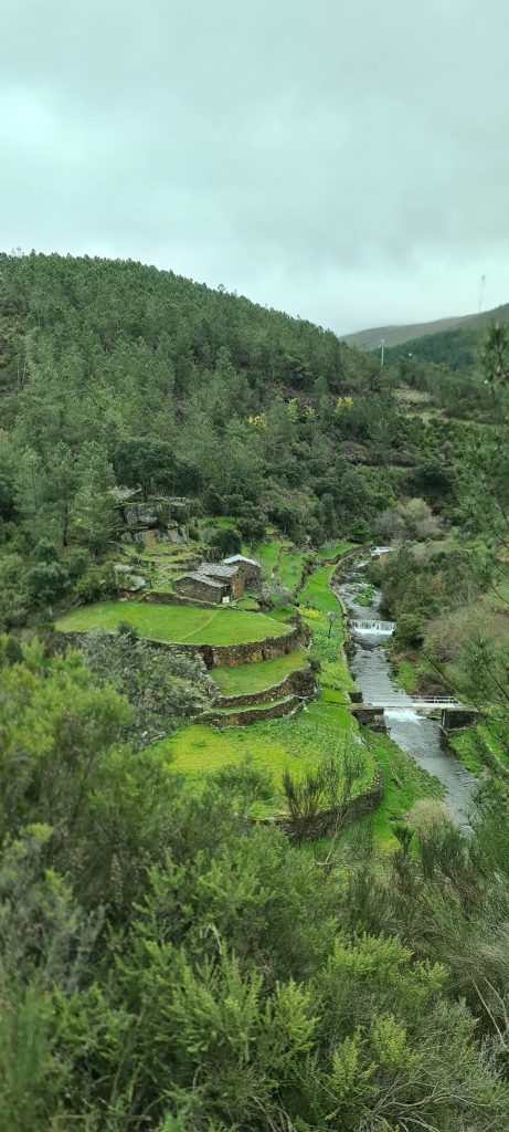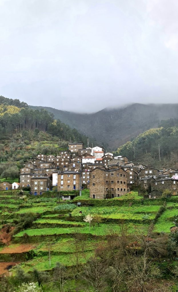 Vendredi 7 mars – Après une nuit passablement calme (sous une pluie battante, certes, mais au moins sans tempête), on se réveille avec une motivation aussi humide que nos chaussettes de la veille. Direction Piódão, un petit bijou en schiste, où toutes les collines sont terrassées avec une patience et un savoir-faire dignes des plus grands bâtisseurs. Ces montagnes, autrefois hostiles, ont été domptées par des générations de cultivateurs qui ont sculpté le paysage pierre après pierre. Franchement, chapeau les anciens!