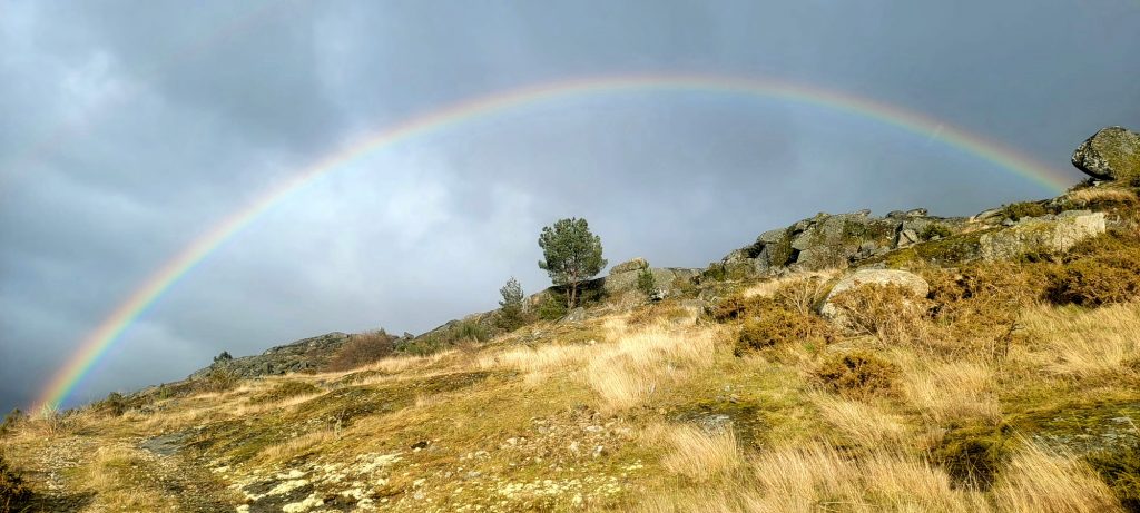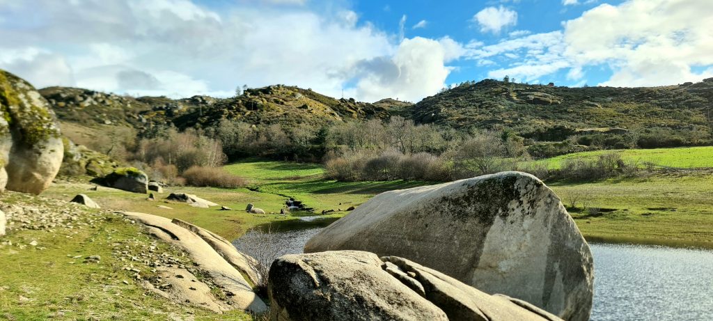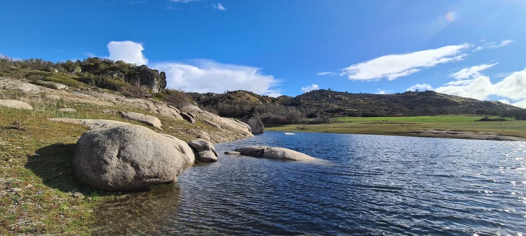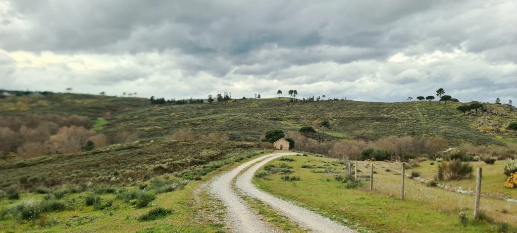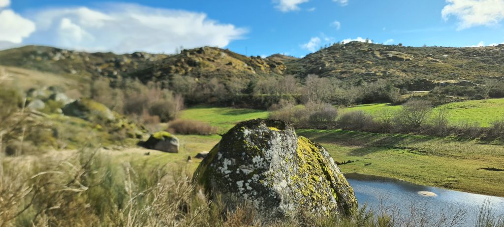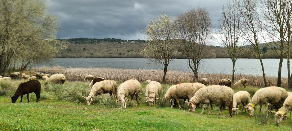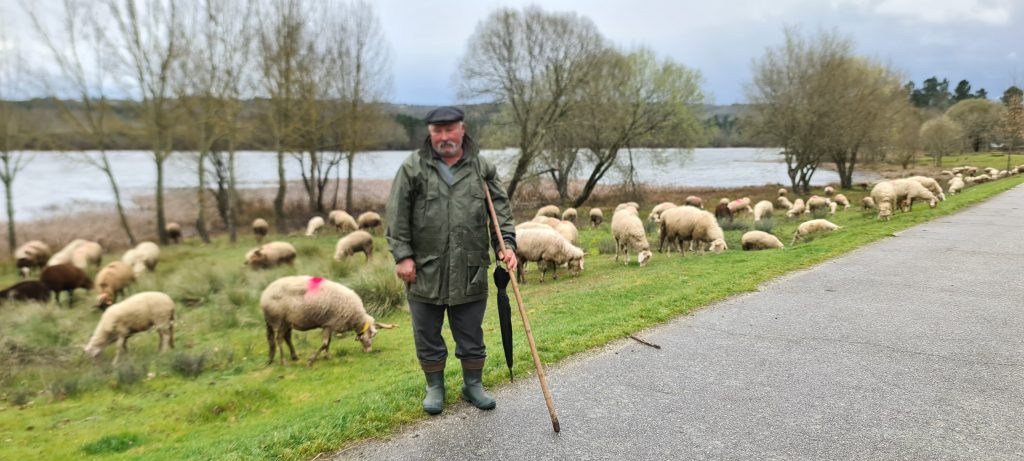Revigorés, on reprend la route vers Barragem da Teja, où on rencontre un berger adorable qui nous raconte des tas de trucs probablement passionnants… que malheureusement, on ne comprend absolument pas. On hoche la tête, on sourit, on a vaguement l’air intelligents (du moins, on l’espère).