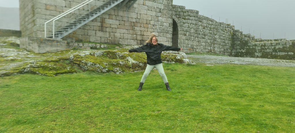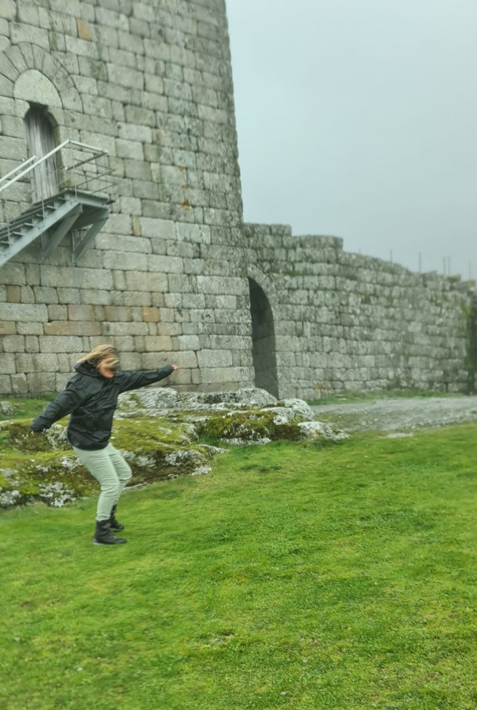 Ensuite, cap sur Linhares da Beira, et là, c’est le chaos météorologique total. Rideaux d’eau, vents à décorner un troupeau entier de taureaux portugais, une lutte acharnée contre les éléments pour tenter d’approcher le château. Mais faut être honnêtes: ça devient trop dangereux et on rebrousse chemin. On court comme des poulets sans tête dans les ruelles pavées, trempés comme des torchons oubliés dans l’évier, et là… le miracle se produit: un café ouvert.