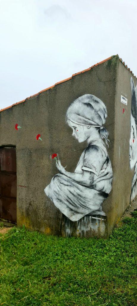 On file vers Vila Real, où on découvre avec amusement qu’elle est jumelée avec… Grasse! Drôle de coïncidence. Passage obligatoire à la lavandaria, où on regarde notre linge tourner avec une intensité dramatique, comme si notre survie en dépendait. Puis, rapide visite de la ville sous une pluie qui ne se lasse pas de nous accompagner. Villa Real c’est 51 000 habitants dont une bonne proportion d’étudiants, beaucoup de très jolis street arts, bref une petite ville charmante, calme, mais on ne s’y attarde pas.