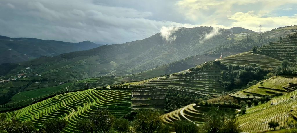 Puisqu’il faut bien avancer, on roule vers la Vallée du Douro, et là, malgré la flotte, on ne peut qu’être émerveillés. Des collines sculptées en terrasses, des vignobles à perte de vue, un décor de carte postale.