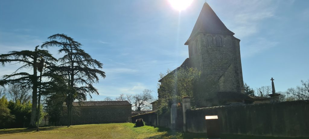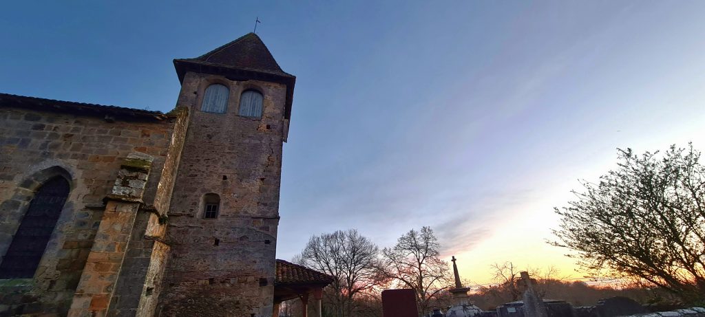 On met les voiles à travers les superbes paysages du Béarn, des collines verdoyantes, des fermes pittoresques et des routes sinueuses où chaque virage réserve une nouvelle carte postale. En fin d’après-midi, on atterrit à Loissan, un hameau si petit qu’on se demande si Google Maps ne l’a pas inventé juste pour nous. Notre bivouac du soir sera parfaitement calme, juste à côté de l’église et du cimetière, une nuit sereine s’annonce.