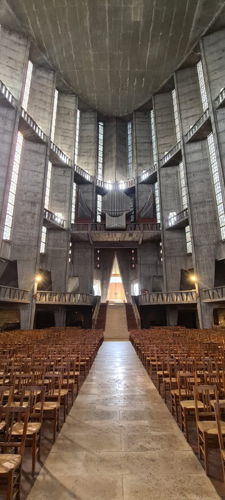 Puis, cap sur la Cathédrale Notre-Dame de Royan. Alors là, attention! Accroche-toi, Maurice! On s’attendait à une église classique, on se retrouve face à un colosse de béton brut, quelque part entre vaisseau spatial et forteresse futuriste. Déroutant, audacieux et franchement impressionnant. De là à dire qu’on a aimé? La réponse est dans la description que j’en ai faite, il faut juste lire entre les lignes!